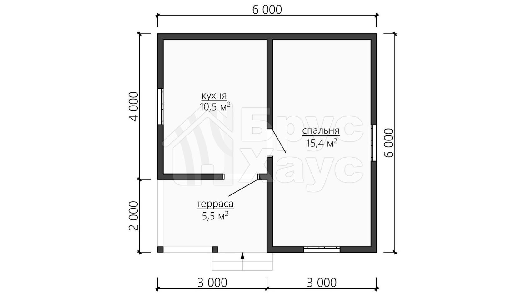 Одноэтажный каркасный дом с прямой крышей, террасой