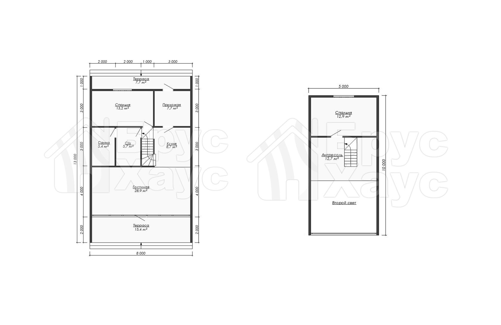 А-фрейм с мансардой, террасой и двумя входами