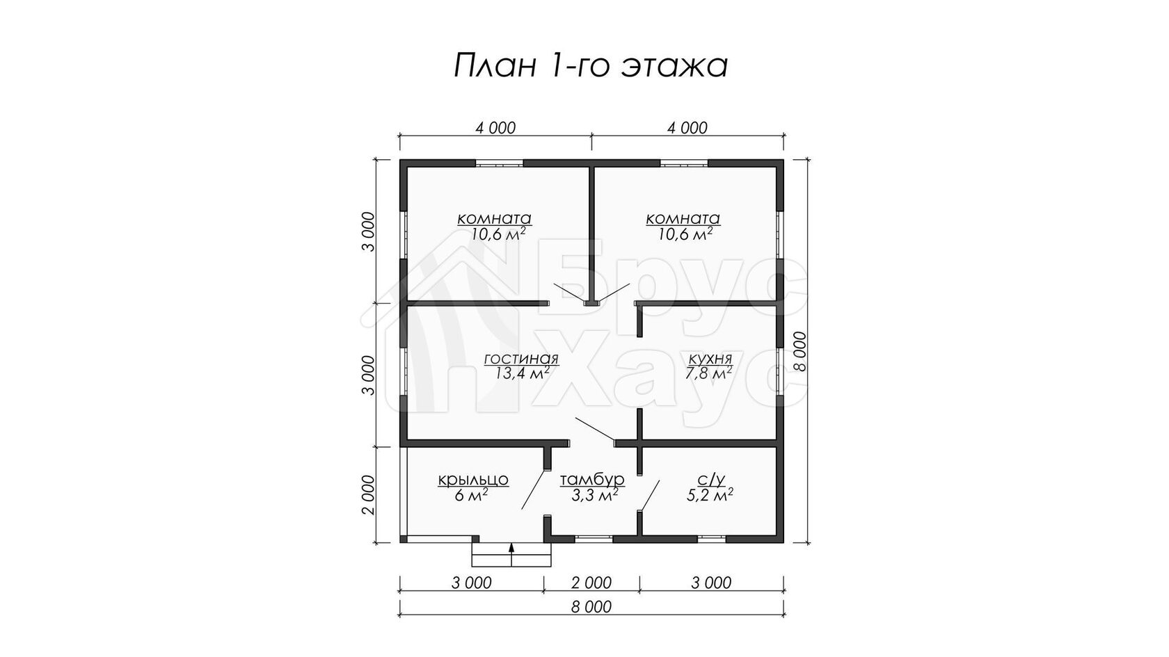 Одноэтажный каркасный дом с прямой крышей, крыльцом